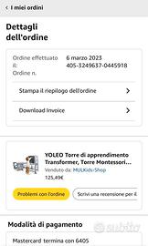 Vendo bellissima torre montessoriana comprata nel 2023 su amazon e pagata 125 euro ! Il prezzo sulla medesima piattaforma e ancora quello come dimostratosi sulle foto pubblicate ! L oggetto e in perfette condizioni usata veramente poco nessun difetto e nessuna parte lesa ! 70 euro trattabili ! Per info 3240953049