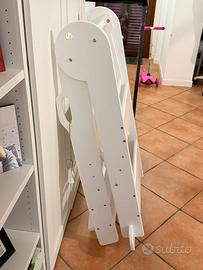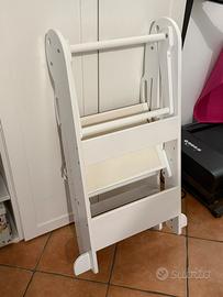 Vendo torre montessoriana (learning tower) in legno, pieghevole e regolabile in altezza. Ideale per permettere ai bambini di partecipare in sicurezza alle attività quotidiane (cucina, lavarsi le mani, ecc.). Caratteristiche: – Struttura solida in legno – Pieghevole, salvaspazio – Altezza regolabile In ottime condizioni, usata pochissimo e perfettamente funzionante. Ritiro a mano a Casnate con Bernate.