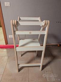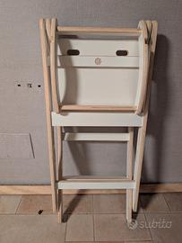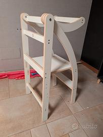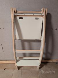 Torre Montessori in legno bianco Richiudibile per minimo ingombro. con sicurezza dietro alla schiena presente un intaglio nel legno a forma di prisma Difficile da spedire, preferisco consegna a mano