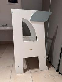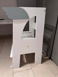 Vendo torre montessoriana RocketBaby completa di accessori (ali). Uno strumento ideale per favorire l’autonomia dei bambini, permettendo loro di partecipare alle attività quotidiane in cucina o al lavandino in totale sicurezza. La torre è in buone condizioni, con solo qualche piccolo segno di pennarello ed usura che non ne compromette l’uso. Disponibile per ritiro a mano in zona (non spedisco per le dimensioni). Prezzo non trattabile.