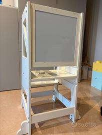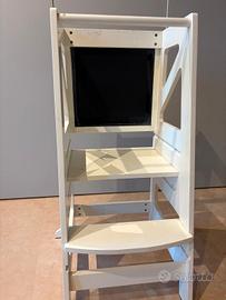 Learning Tower (Torre Montessoriana) in legno color bianco, uno strumento utilissimo per coinvolgere i bambini nelle attività quotidiane in cucina e in casa in totale sicurezza.