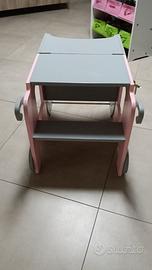 Vendo torre/tavolo/sgabello di apprendimento Montessori in legno massello per bambini dai 12 mesi in poi, in buone condizioni, colore rosa/grigio. Usato poco. Struttura multifunzionale che si trasforma facilmente in: •Torre di apprendimento per permettere al bambino di raggiungere superfici più alte (come il piano cucina) in sicurezza •Tavolo da disegno per attività creative •Tavolo + sedia per mangiare, giocare o imparare Ideale per favorire autonomia, coordinazione e indipendenza. Robusto, stabile e pratico, perfetto per cucina e cameretta. Ottima soluzione salvaspazio. Dimensioni: Altezza: 90 cm Larghezza: 38 cm Profondità: 40 cm Primo gradino: 24 cm Secondo gradino: 45 cm Ritiro a mano in zona Gallarate.