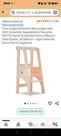 Torretta montessoriana Bianconiglio Kids in ottime condizioni con pannello aggiuntivo Kid safe per i bambini più piccoli. Regolabile in tre altezze. Attualmente venduto a 170 euro. Ritiro a Borgo San Lorenzo