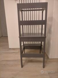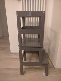 torretta in legno,con verniciatura atossica ad acqua grigia, facile da pulire,presenta qualche lieve segno di usura, buone condizioni