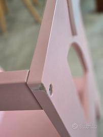 Torretta di apprendimento in legno modello RocketBaby, color rosa con dettagli a forma di ali laterali.