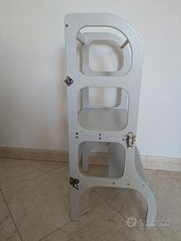 Vendo Torretta Montessoriana (scaletta) in legno convertibile in scrivania/sgabello. Colore grigio chiaro.