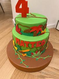 Torta scenografica in gomma Eva a tema Giungla/Dinosauri/Animali o comunque adattabile a diversi temi.