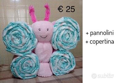 La Torta è realizzata con pannolini Pampers (taglia 3 o 4) è possibile realizzarla sia per femmina che per maschio.