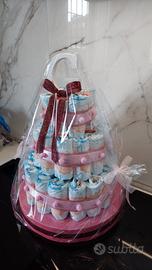 Torta di pannolini idea regalo nascita battesimo. La torta è personalizzabile nei colori dimensioni e anche nel prezzo. possibilità di spedizione.