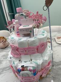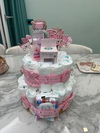 La nostra torta di pannolini è realizzata a mano con cura e amore, perfetta per festeggiare l’arrivo di un bebè – sia maschietto che femminuccia.