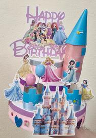 Vendo torta finta scenografica ispirata al tema principesse disney, perfetta per feste di compleanno, allestimenti, vetrine o candy table.