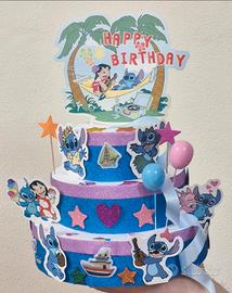 Vendo torta finta scenografica a tema Stitch, ispirata al personaggio Disney del film Lilo & Stitch.