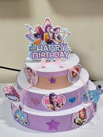 Vendo torta finta scenografica tema K-Pop Demon Hunter, realizzata con cura nei dettagli in polistirolo e cartoncino.