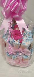 vendo torta di pannolini composta da 40 pannolini sole e luna taglia 4/ 9 kg una biberon una confezione di salviette per cambio pannolino un bagnoschiuma fisssan per il bagnetto un anello refrigerante per I primi dentini e un pupazzetto portachiavi eventualmente posso scrivere il nome della bimba