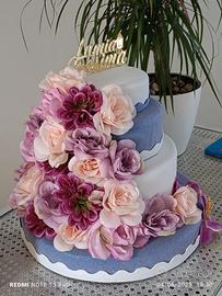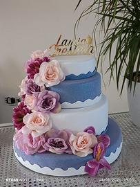 Vendo splendida torta scenografica in polistirolo, decorata con gomma eva e fiori,ideale per cresima ma volendo si può cambiare il topper