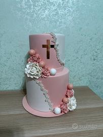 Vendo torta scenografica Comunione bimba possibilità di aggiungere none e numero. Basi 20x15h e 15x15h