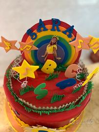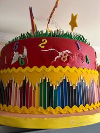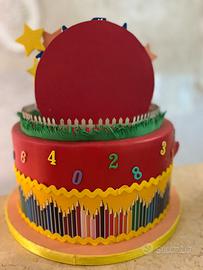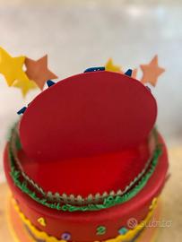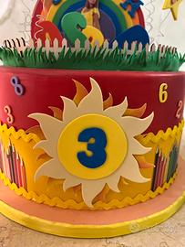 Torta scenografica di Lucilla. Utilizzata per un 3’ compleanno. Il numero tre è la scritta del nome possono essere tolti tranquillamente. Lateralmente è leggermente rovinara (foto allegata)