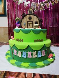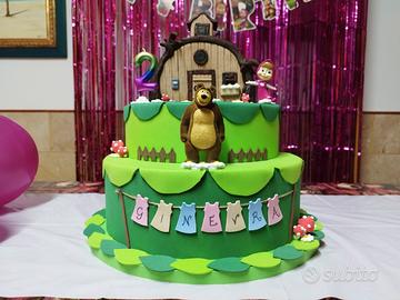Torta scenografica in gomma eva e pasta di zucchero (casetta). Sono escluse le statuette di Masha e Orso. É possibile modificare il nome.