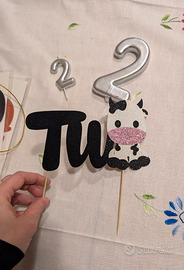 🕯️ 2 candeline argento numero 2 e cake topper "Two"