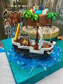 Torta realizzata interamente a mano, nave pirata dipinta a mano.