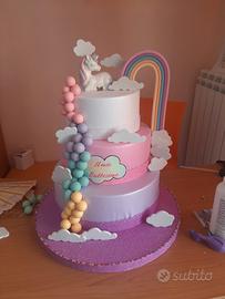 vendo torta scenografica arcobaleno. la torta viene venduta senza la statuina dell'unicorno.