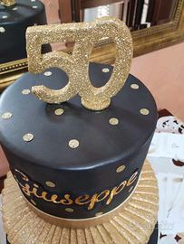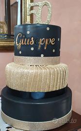 Torta scenografica 3 piani nero/oro.