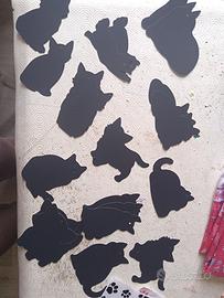 in regalo oggettini per regalo fine festa sempre a tema gatto (21 segnalibri con laccetto da "graffiare" da 9 timbri zampa, 8 zampine appiccicose e 3 zampine tipo squishy e 18 bustine 16 rosa e 2 nere)