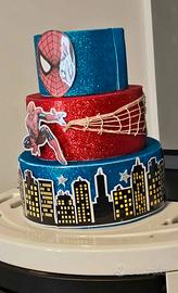 Torta 3 piani in gomma eva con Spiderman. Possibilità di aggiungere nome e numero.