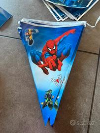 Come da titolo vendo torta scenografica spiderman realizzata con metodo del tiraggio con gomma eva. Pupazzetto reale in plastica e lucine funzionanti. Nome personalizzabile. A corredo aggiungendo solo 10€ nel prezzo vendo anche telo spiderman, festone happy birthday e bandierine sempre spiderman, struttura numero 3 in legno tema spiderman e palloncino nuovo mai aperto spiderman in 3D e palloncini vari (rossi, neri e bianchi di spiderman)