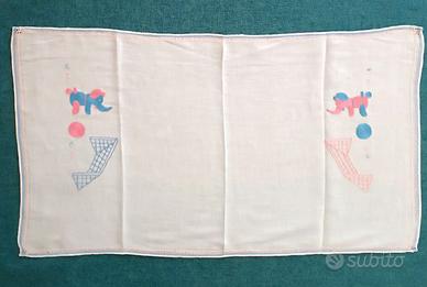Vendo tovaglietta pappa bimbi realizzata artigianalmente con ricamo a mano. Misure 75x44 Posso consegnare il pacco per la spedizione solo all'ufficio postale. È possibile anche ritirare direttamente a Momperone (Al). Vi invito a visualizzare il mio account: Giusi Faccio Dopo la morte di mio marito sto vendendo casa e svendo libri e tantissimi altri oggetti, magari qualcuno vi può interessare. Non esitate a chiederne la disponibilità di altri che non vedete inseriti, se li ho li metto in vendita.