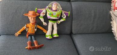 da toy story 4 buzz lightyear e woody interattivi tra loro e parlanti con suoni e luci buzz ha qualche piccola sverniciatura vendibili anche separatamente le frasi sono in inglese essendo originale disney store senza scatola