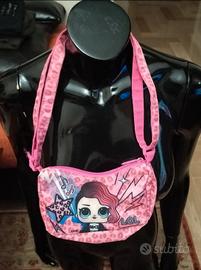 Borsetta a tracolla Coriex L.O.L. Surprise I Rocked.100% poliestere,lavabile,con bella doppia fantasia di una LOL con t-shirt AC/DC e altra LOL con abito animalier.Dimensioni: 14 cm X 19 cm.Lunghezza totale della borsa con tracolla 39 cm, mentre solo la tracolla misura 29 cm.Ottime condizioni ,come nuova.Possibile consegna a mano ad Arcore,Monza,Sesto e a Milano.