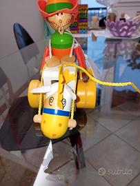 Vendo nuovo mai usato pull along( trainabile) cowboy con cavallo in legno e rifinito con pannolenci, coda e criniera cavallo, cappello e galosce cowboy. Dipinto con colori vivaci, allegri . È un prodotto Sevi. È adatto ai bimbi da 1 anno insu. Articolo bello anche per chi amante dei giochi " vecchi" come concezione. Non ha scatola.