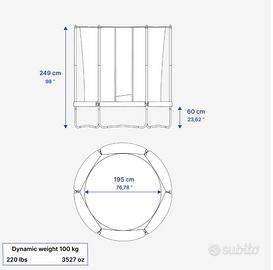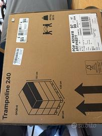 Trampolino elastico 240 con rete di protezione nero Nuovo mai aperto Certificato per peso 100kg