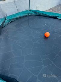 Trampolino elastico bambino Decathlon come da foto. Il tappeto e la struttura sono perfettamente integre, le imbotture esterne sono usurate come da foto, volendo con poco piu di 20 euro si prendono nuove sul sito decathlon (solo a scopo estetico).