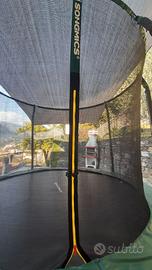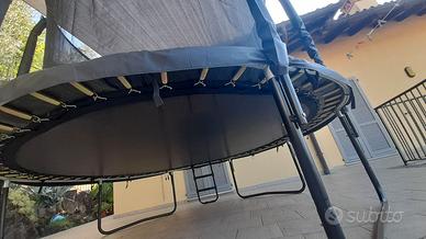 Trampolino elastico diametro 305 cm. Palo alto 180 cm. Rete e tappeto protettivo. Scaletta. Prodotto come nuovo, usato pochissimo.