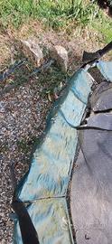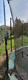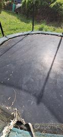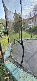 Trampolino elastico Decathlon, diametro 3 metri, 2,4 metri il diametro del tappeto. Struttura integra e in ottimo stato, molle ok e tappeto buono senza strappi. Il rivestimento protettivo delle molle e dei pali è degradato ma facilmente sostituibile. La rete di protezione è integra. Regalo-vendo a 20 Euro. Visibile a San Mauro Torinese