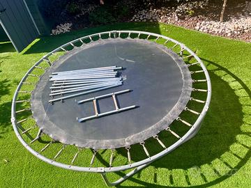 ✔ Copertura molle sostituita lo scorso anno ✔ Scaletta inclusa 🔧 Da sostituire: rete di protezione.quella perimetrale sui pali verticali Telo cooertura invernale incluso Libretto istruzioni incluso E’ smontato molto semplice da montate Ci sta in auto