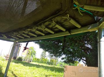 Trampolino elastico acquistato in Dechatlon usato poco, buono stato. Completo di tutti i pezzi. Dopo aver fatto le foto è stato smontato e riposto nella sua scatola originale. Vendo per non utilizzo. Mancano le istruzioni originali.