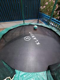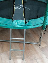 KLAR FIT Jumpstarter - Tappeto Elastico da Giardino, Diametro: 2,5 m, Rete di Sicurezza Interna, Trampolino Elastico, Scaletta in Acciaio Zincato, 3 Gambe di Supporto Doppie, Peso max: 120 kg