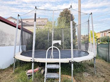 Saltarello trampolino in buone condizioni la rete telo da salto strattura del trempolino tutto in buon stato solo coprimolle non é in buon stato come si vedi nel foto .comprato da decthlon piu di 500 euro