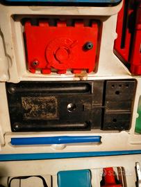 vecchio giocattolo per bambini si tratta di un trapano a batteria che può trasformarsi in seghetto, levigatrice