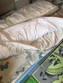 Trapunta e paracolpi per lettino neonato colori abbinati e unisex. Marca Prenatal, in ottimo stato. La trapunta è composta da due pezzi: piumino interno e copri piumone sfoderabile e lavabile in lavatrice. Imballo originale compreso. Il tutto ha un valore, da nuovo di circa 120 euro.