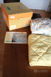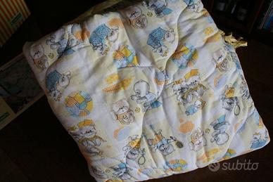 Trapunta per culla con paracolpi Piccoli Pulcini Marca Biancaluna nursery Piccoli Pulcini dimensioni Trapunta 115x160 cm dimensioni Paracolpi 45x180 cm Esterno cotone 100% Interno fibra in poliestere siliconato, anallergica, termoisolante, effetto piuma, peso gr 300 mq Vendo a 50 euro dimensione scatola 48x41x28