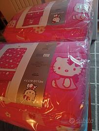 n. 2 trapunte Hello Kitty coordinate per la cameretta delle bambine, nuove mai usate con particolari glitterati, 100% cotone fuori e 100% fibre anallergiche. Vendibili anche singolarmente