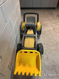 Vendo trattore a pedali per bambini , un classico dei giochi all'aperto, solido e super divertente. Ideale per piccoli aspiranti costruttori! Caratteristiche principali: Marca: Peg Perego (garanzia di qualità e materiali resistenti). Funzionamento: A pedali con catena (ottimo per coordinazione e movimento). Dotazione: Grande benna frontale mobile, azionabile manualmente tramite le leve laterali per caricare e scaricare terra, sabbia o giocattoli. Seduta: Sedile regolabile per seguire la crescita del bambino. Extra: Clacson sul volante e portabicchiere laterale. Condizioni dell’oggetto: Il trattore è perfettamente funzionante dal punto di vista meccanico (pedalata fluida e benna stabile). Come visibile in foto, presenta normali segni di usura dovuti all'utilizzo e all'esposizione (plastiche leggermente sbiadite dal sole e qualche graffio), ma la struttura è integra e prontissima per altre ore di gioco.