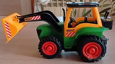 Il Trattore con benna gialla e braccio mobile è realizzato con materiali plastici, è un mezzo di lavoro giocattolo, il giocattolo trattore con benna