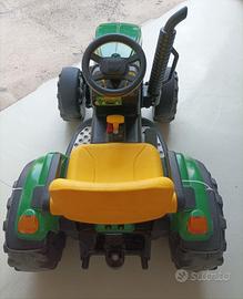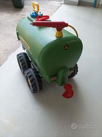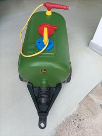 trattore elettrico John Deere per bambini, due livelli di velocità più retro marcia, carro con sponde , botte per acqua con getto. (batteria e gomme trattore da sostituire) . carro e botte ottimo stato