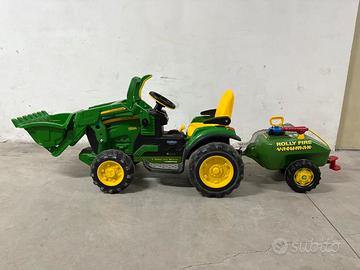 Vendo trattore elettrico peg perego per bambini, con rimorchio e cisterna con pompetta acqua. Tutto comprato a luglio 2023, batteria ancora buona, non usato tantissimo. Benna funzionante ma come si vede in foto è crepata, (Si può anche togliere).