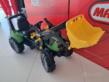 Trattore giocattolo a pedali Deutz-Fahr completo di caricatore frontale. Prezzo su richiesta, contattaci per maggiori informazioni